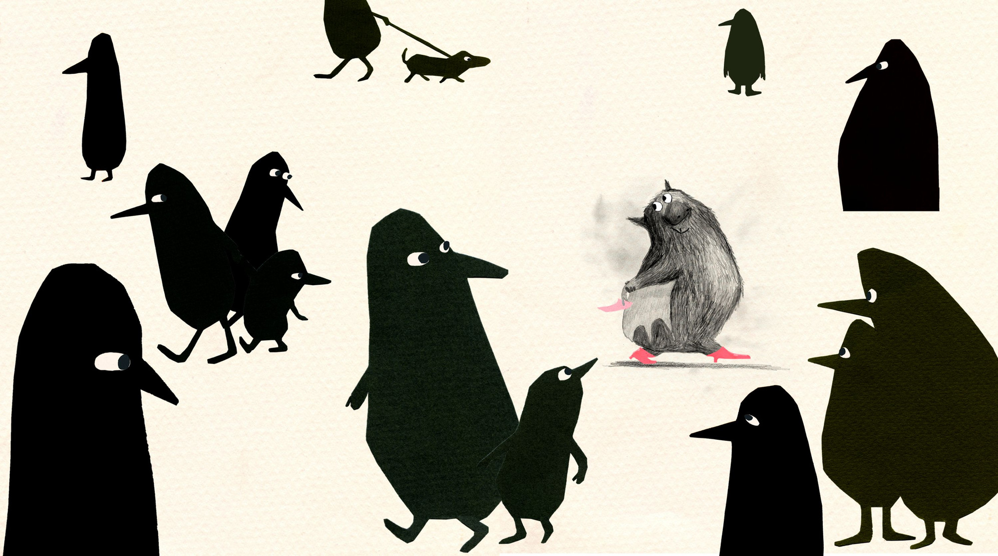 Alice’s stage design roots shape her way of telling stories, but curiosity drives her across all forms of visual storytelling. She’s written animated shorts for Swedish Television (SVT) and written award-winning picture books translated worldwide. Alice’s stories explore human shortcomings through words and images. In her visual language, she strives for a sense of humanism. Her artwork starts as layered paper collage, later refined with hand-drawn and painted details.