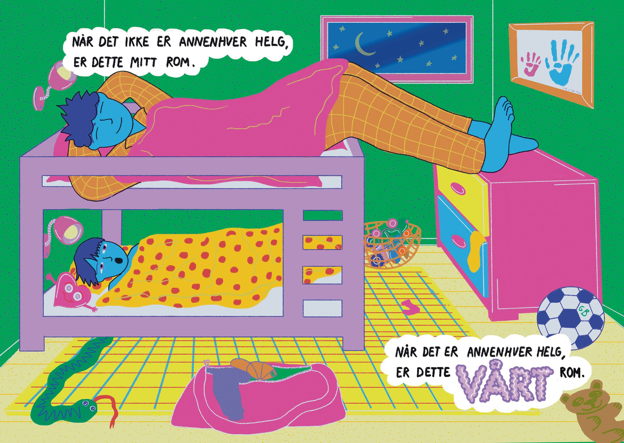 Annika Linn Verdal Homme is an illustrator, risoprinter, graphic designer and comic artist from Kristiansand, based in Oslo. Drawing has become the tool that most effectively translates the ideas that pop into her head into something physical. And therefore for her it has become the most natural way to tell stories. The style is probably largely characterized by the method, which is often impulsive and impatient. She spends as little time as possible dwelling on the choices she makes, and trusts her instincts. More technically, she generally likes monoliners, and not varying the line thickness in the same drawing.