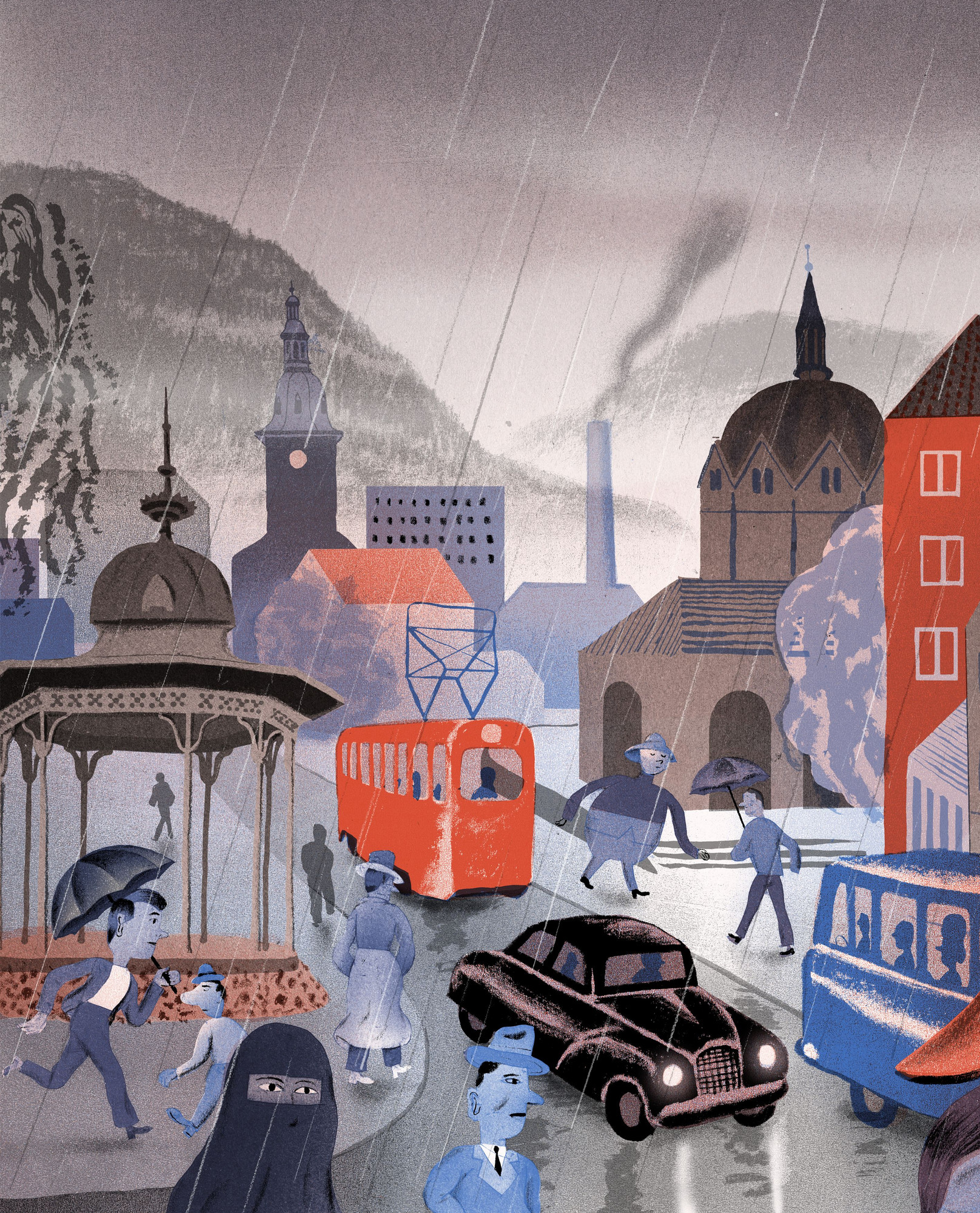 Bjørn Rune Lie is a Norwegian illustrator based in a small fishing village in Fife, Scotland. Since graduating from Falmouth College of Arts in 2001 he has developed a distinctive visual language shaped by experimentation, humour and texture. His work combines the boldness of folk and outsider art with influences from film noir to create art that feels playful, strange and full of warmth and beauty. The pull of Norwegian nature often finds its way into his imagery, most notably in his acclaimed picture book Slapsefjell / Slush Mountain (Magikon forlag, 2008), which has been translated into multiple languages.