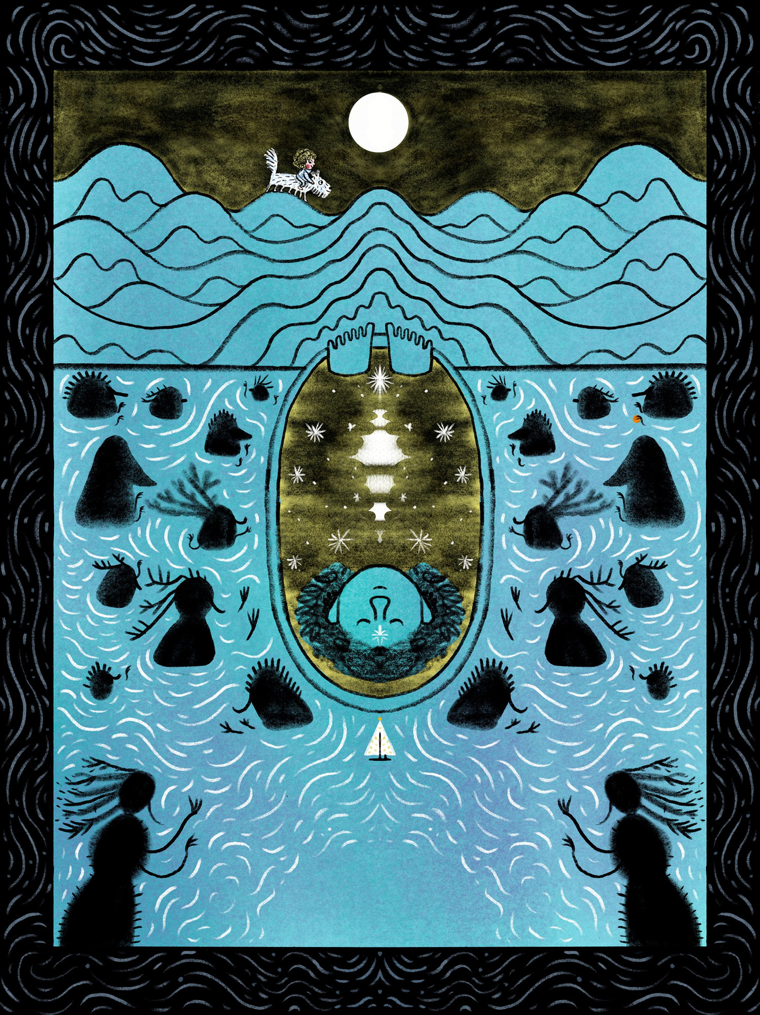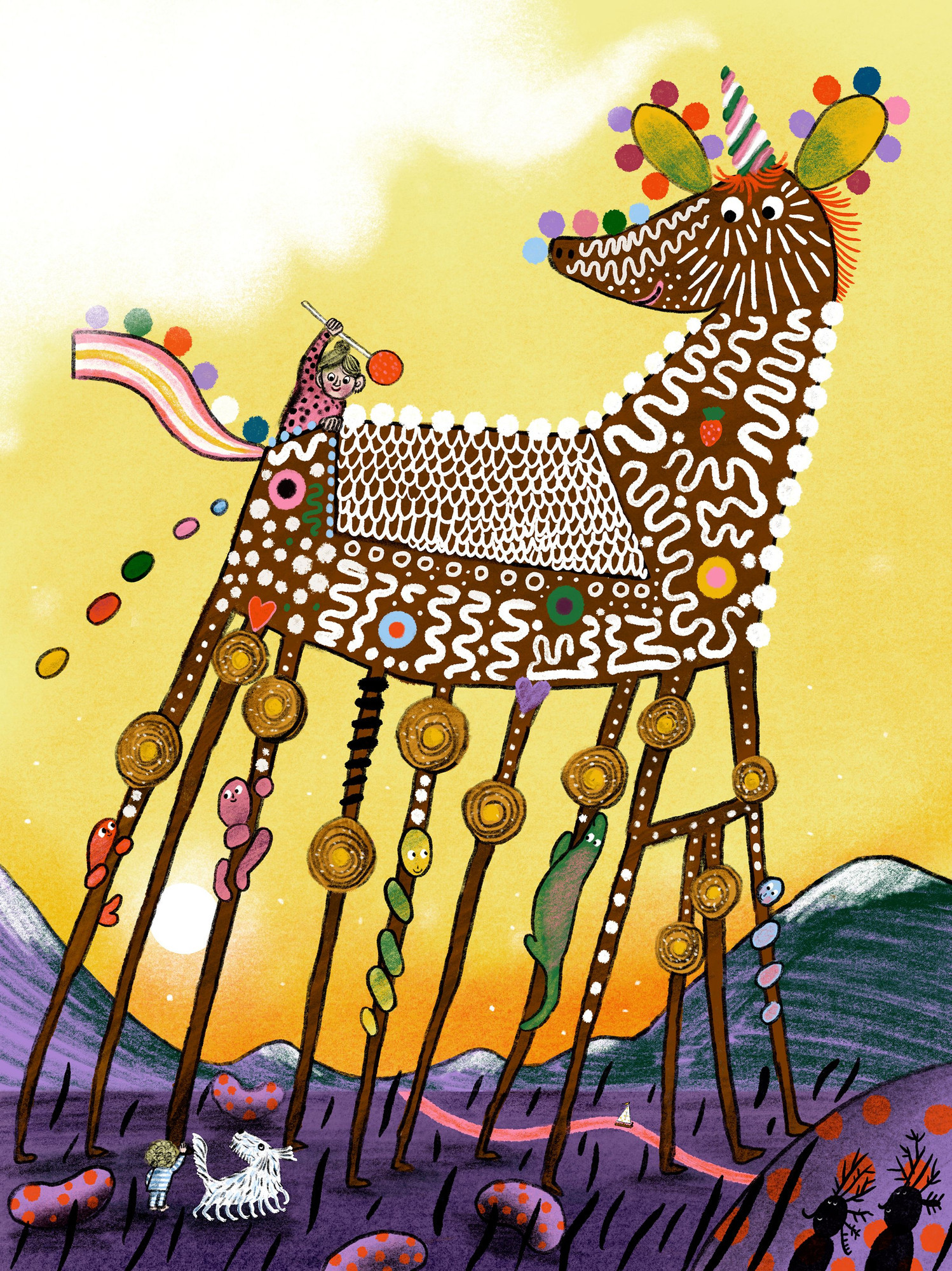 Her work evolves around nature, the power of imagination and play and how the world can be experienced from a child’s perspective. She combines analogue and digital drawing techniques, enjoying the mistakes, surprises and the crookedness of hand-drawn work. Her works contain a love of nature, hidden creatures, and magical atmospheres.